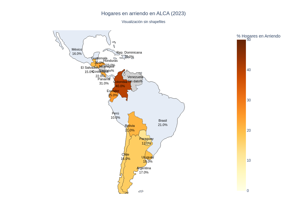 Indicadores en América Latina sobre porcentaje de hogares que arriendan vivienda.